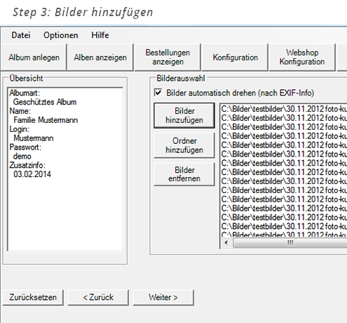 Beispiel: Neues Album anlegen und Uploaden