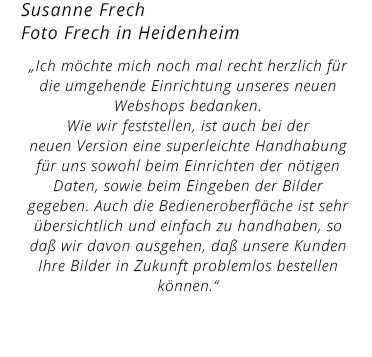 in Ihren Webshop. Die Aufnahmen werden für